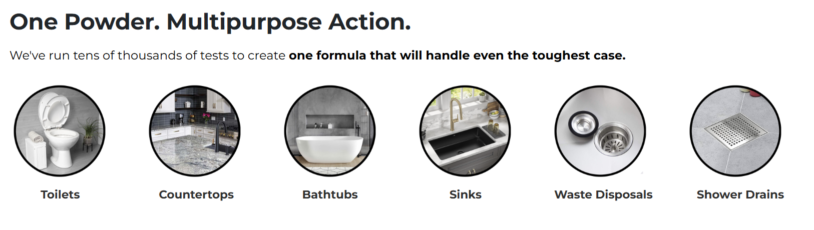 Of course! Powder is equally effective in dealing with clogs as it is in removing plaque, limescale, rust and any other contaminants. Simply sprinkle the product liberally on the dirt, leave it on for 5-15 min (depending on the complexity of the dirt), rub a little and rinse off with water.